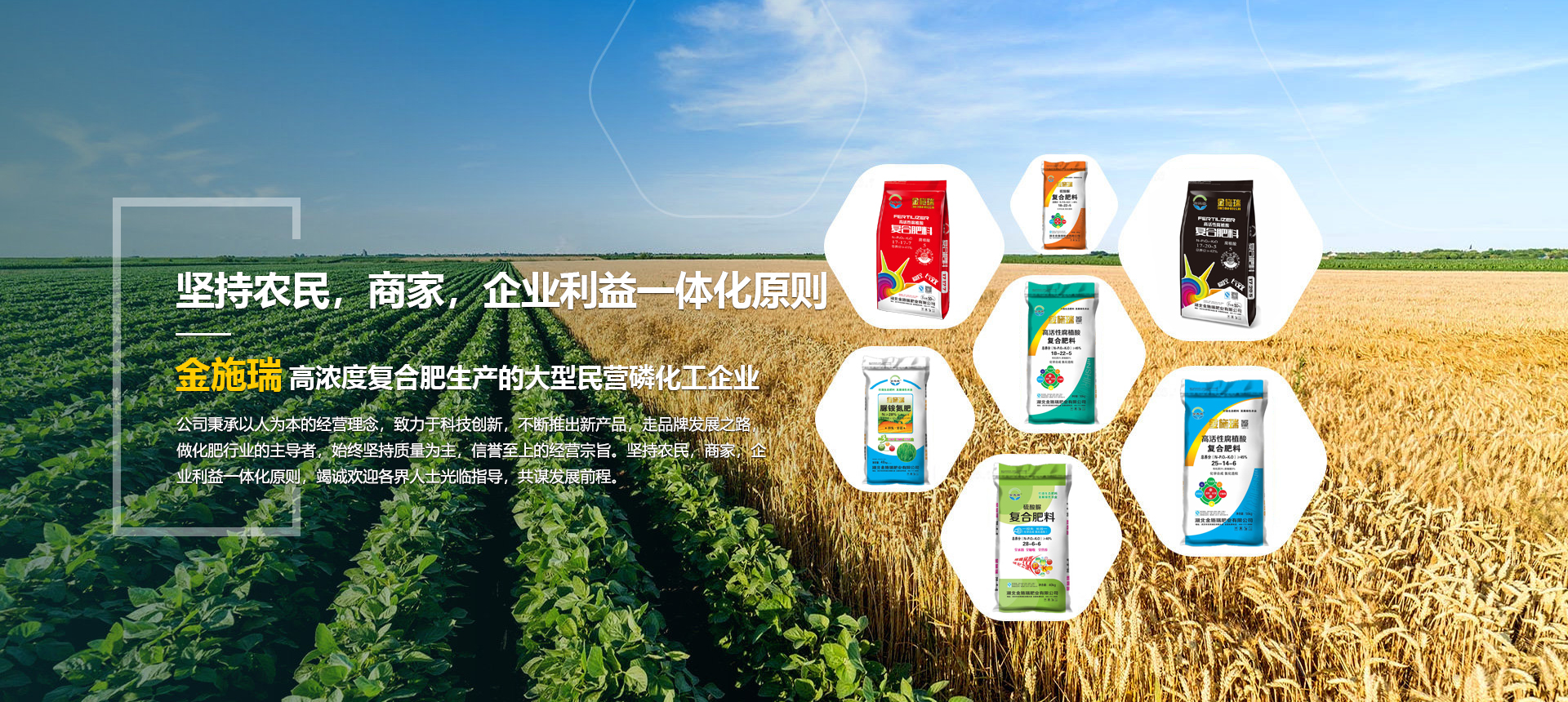 湖北金施瑞肥業(yè)有限公司是一家以生產(chǎn)高濃度復(fù)合肥為主導(dǎo)產(chǎn)品的大型民營磷化工企業(yè),在湖北、河南等地均建有大型的現(xiàn)代化生產(chǎn)基地。根據(jù)各地的土壤情況不同由本公司專業(yè)的研發(fā)機(jī)構(gòu)專門為各地區(qū)研制不同配方的化肥,真正做到測土配方施肥。